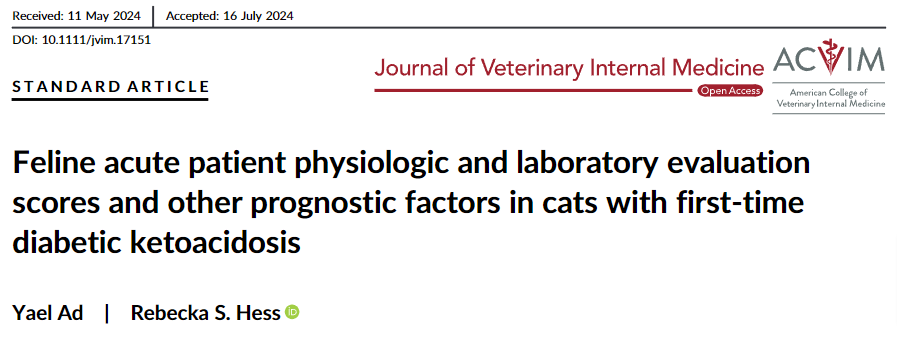 고양이 DKA 사례의 사망률은 연구된 인구와 집중 치료의 가용성에 따라 30%에서 50%까지 다양할 수 있다. 하지만 환자다 그 사망 확률은 달라 현상태에 따라 추산하는 방법이 필요하다.