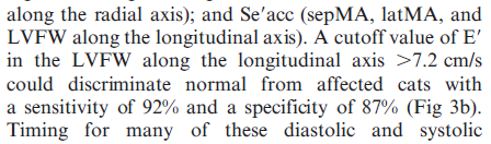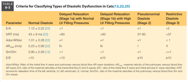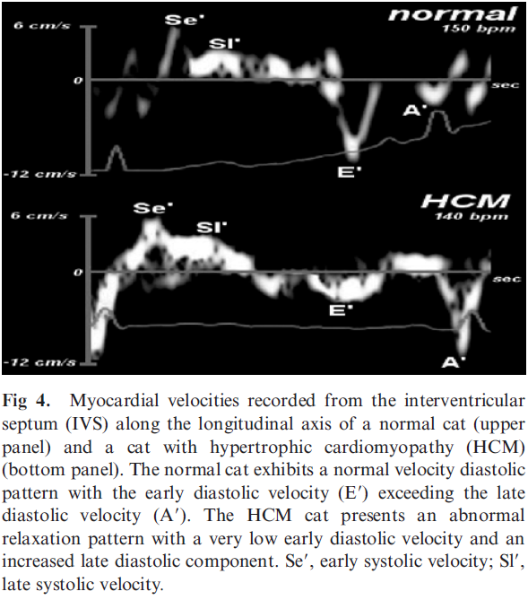 ( KOFFAS, H., et al. Pulsed tissue Doppler imaging in normal cats and cats with hypertrophic cardiomyopathy. Journal of Veterinary Internal Medicine, 2006, 20.1: 65-77.)