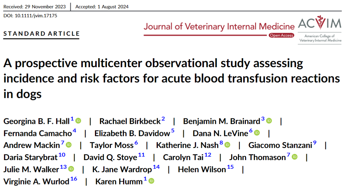개에서 급성 수혈 부작용(TR) 발생률 및 위험 요인에 대한 연구를 한 새 논문이 나와 소개한다. 물론 영국이라는 지역을 기반으로 조사된 연구이기 때문에 한국에 직접적으로 적용하는데 제한이 있지만 참고할만한 자료라고 봐야 한다.