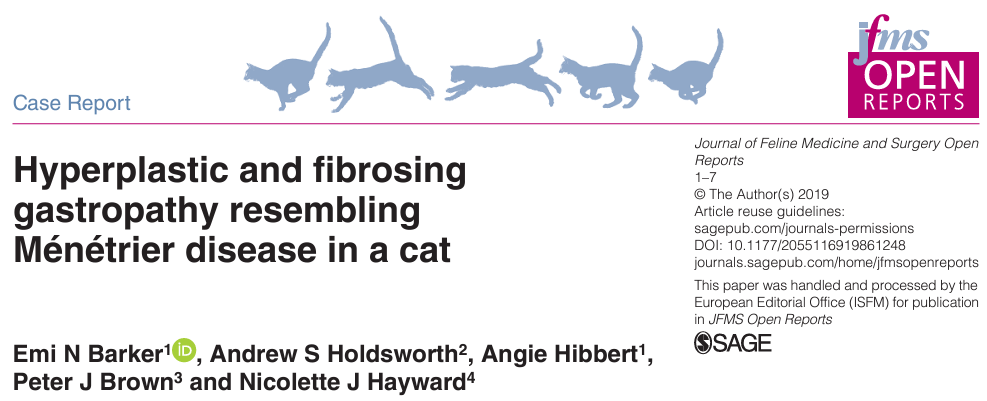 거대 비대성 위염을 보이는 메네트리예 병의 고양이에서의 첫 번째 진단 보고 케이스이다. Ménétrier-like disease