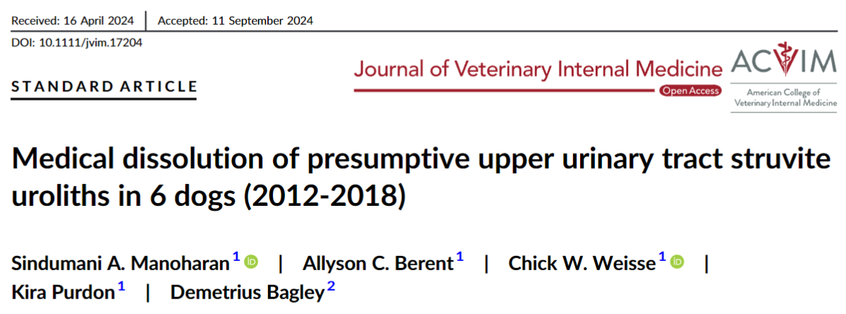 스트루바이트 결석 치료에 준한 논문이기 때문에 모든 결석이 다 된다고 보면 안된다. 또한 스텐트 삽입의 경우 내시경을 통해 삽입했는데, 대형견이 주종이었기 때문이다.