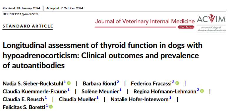 반려견의 에디슨병 즉, 부신피질기능저하증이 있는 경우 대사 작용에 의해 갑상선 기능저하증이 발생한다는 것은 수의사들 사이에서는 상식이다. 하지만 놀랍게도 이게 문헌적으로 증명된 적은 없었다. 이번에 이 상식을 지지해 줄 수 있는 논문이 나와서 소개한다.