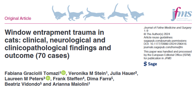 고양이의 창문 끼임 사고: 임상적, 신경학적, 임상 병리학적 소견 및 결과