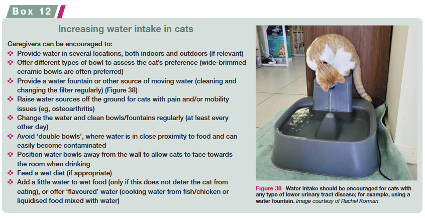하부 요로 질환을 가진 고양이의 경우 수분 섭취 증가가 질병 관리에 도움이 될 수 있습니다. 고양이가 물을 더 많이 마시도록 격려하기 위해 보호자가 할 수 있는 여러 가지 방법들이 있습니다.
