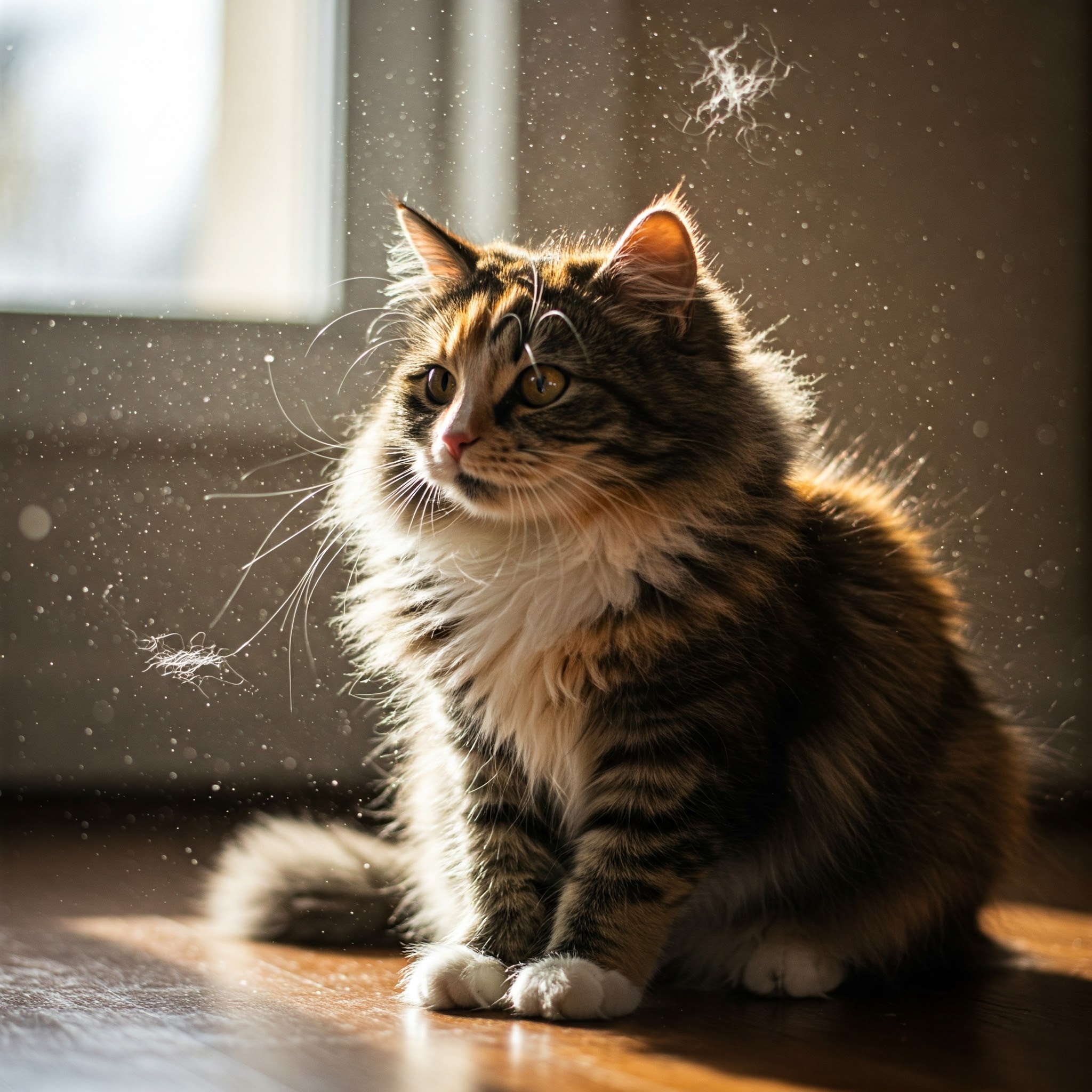 - 청결한 환경: 털갈이 시기에는 집안 청소와 환기에도 신경 쓰세요. 바닥이나 가구에 떨어진 털은 진공청소기나 테이프 클리너로 수시로 제거하고, 공기청정기를 사용하면 떠다니는 미세한 털과 먼지를 줄일 수 있습니다. 고양이가 자주 지내는 담요나 쿠션도 자주 세탁하여 털을 제거하고 쾌적하게 유지합니다.
