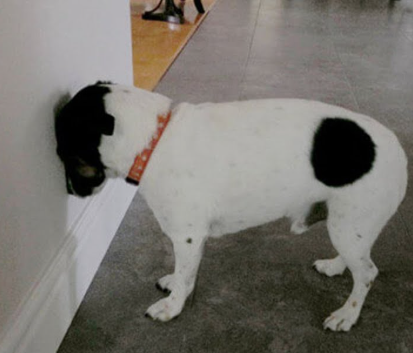 치매를 앓는 노령견은 이 사진처럼 테이블 아래에 머리를 박고 오랜 시간 빠져나오지 못하는 등 방향감각 상실 증상을 보일 수 있습니다. 익숙한 공간에서 벽을 향해 서 있거나 구석에 머리를 둔 채 멍하게 있는 행동은 인지 기능 저하로 주변 환경을 제대로 인식하지 못할 때 나타나는 전형적인 모습입니다. 이러한 행동이 반복된다면 치매의 초기 신호일 수 있으므로 수의사와 상담이 필요합니다.