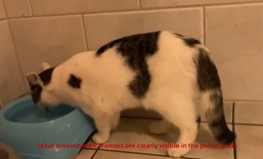 | 11개월령 고양이의 가성 기립성 진전증(pseudo-orthostatic tremor) 사례를 보고한다. 해당 고양이는 서 있을 때 발생하는 골반지 진전을 주소로 내원하였으며, 신경학적 검사 및 체중 부하 들기 검사를 통해 진전이 자세와 관련이 있음을 확인하였다. 의식 상태에서의 침 근전도 검사 결과 6 Hz의 리드미컬한 근육 방전이 관찰되었으며, 이는 가성 기립성 진전증으로 진단되었다. |