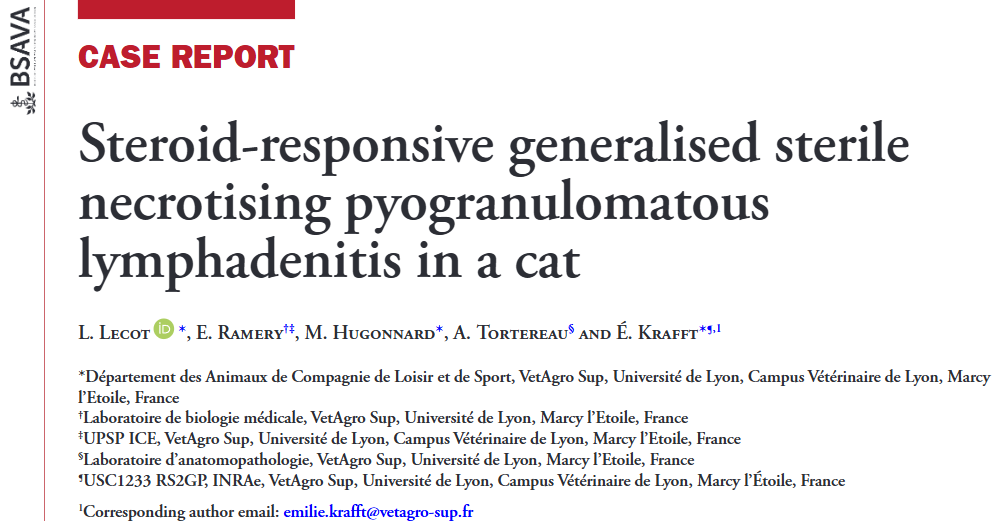 결론적으로, 고양이에서 발열과 말초 및/또는 내부 림프절 비대가 나타나는 경우, 스테로이드 반응성 전신성 무균 괴사성 농육아종성 림프절염을 감별 진단 목록에 포함해야 한다. 이 질환의 임상 양상과 최적의 치료 계획을 더 잘 특성화하기 위해서는 추가 연구가 필요하다.
