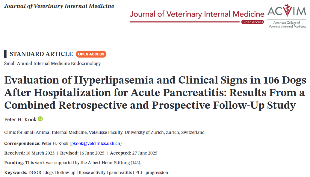 지금까지 이 두 검사법이 높은 상관관계를 보인다는 것은 여러 연구를 통해 알려졌으나, 급성 췌장염으로 입원 치료를 받은 개가 퇴원한 후의 상태, 즉 회복기 동안 리파아제 수치와 실제 임상 증상이 어떤 관계를 보이는지에 대한 데이터는 거의 없었습니다. 임상 현장에서는 퇴원 후 추적 검사에서 반려견의 컨디션은 양호해 보임에도 불구하고 리파아제 수치가 여전히 높게 유지되는 경우를 종종 마주하게 됩니다. 이럴 때 이 수치를 어떻게 해석하고 치료 계획을 세워야 할지 고민이 되는 것이 사실입니다.