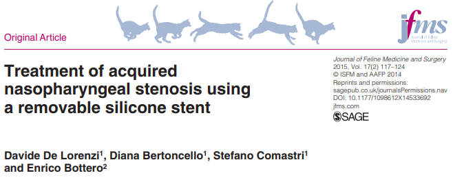 [참고문헌 (Reference)] De Lorenzi, D., Bertoncello, D., Comastri, S., & Bottero, E. (2015). Treatment of acquired nasopharyngeal stenosis using a removable silicone stent. Journal of Feline Medicine and Surgery, 17(2), 117-124.