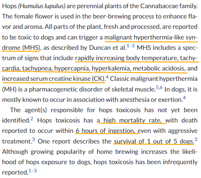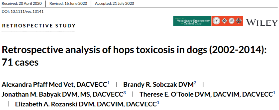 개에서 홉(맥주 성분) 독성에 관한 논문