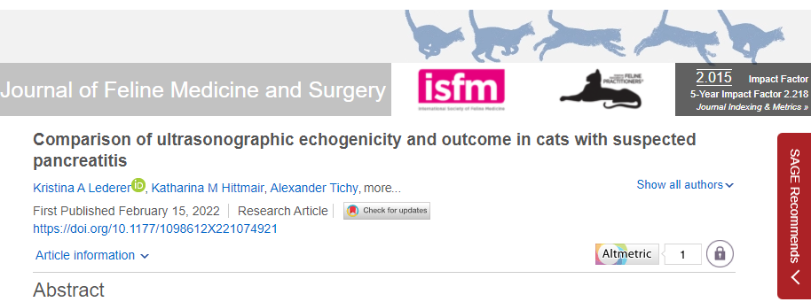 고양이 췌장염 환자에서의 초음파 검사 결과치 관련