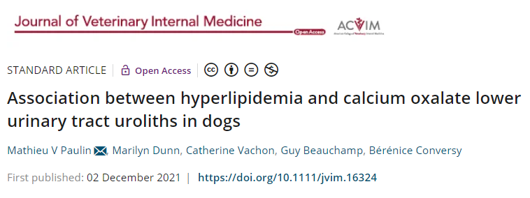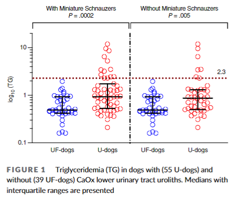 결론을 요약하자면 고지혈증이 있는 개에서는 calcium oxalate 에 의한 결석이 발생할 가능성이 높으니