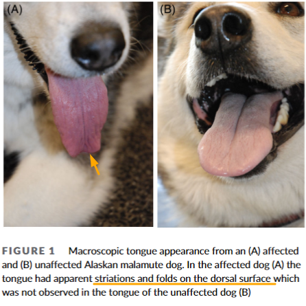 알라스칸 말라뮤트 에서 보이는 혀주름 및 다발성신경병증