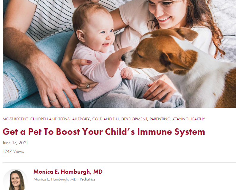 반려동물이 소아의 면역계를 증진시킨다는 논문으로 소아과전문의인 Monica E. Hamburgh 선생이 쓴 논문이다.