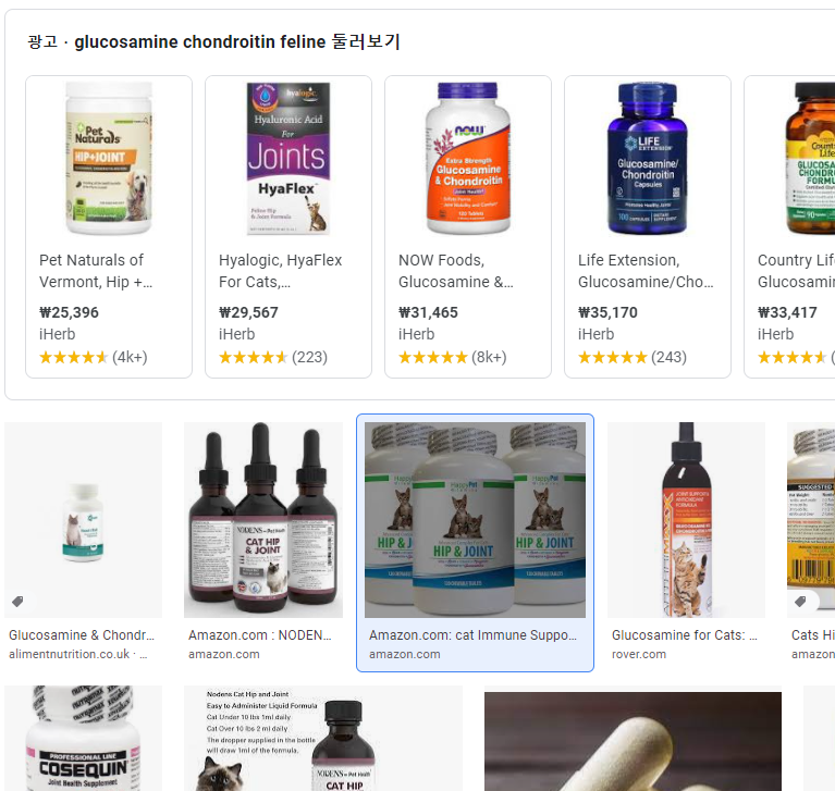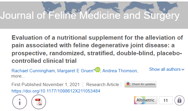 고양이 관절염 환자에서의 영양제/보조제의 효과 (글루코사민 & 콘드로이친 )