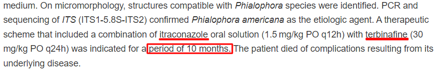결국 사상균증 = 곰팡이성 감염이라 논문 제목에 써있는 Phialophora americana 가 그 사상균일 것이다.