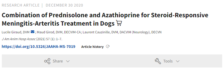 스테로이드 반응성 뇌수막염/동맥염에 대한 치료 프로토콜로 스테로이드와 azathioprine 투여 프로토콜의 효용성에 대한 논문