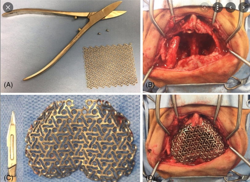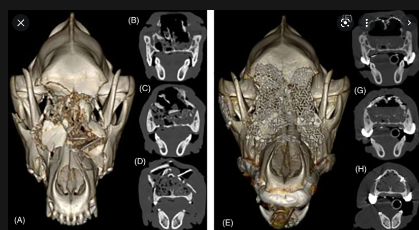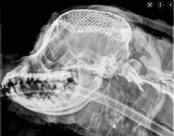 개두술 후 금속 매쉬를 이용한 두개골 봉합 자료, 반려견