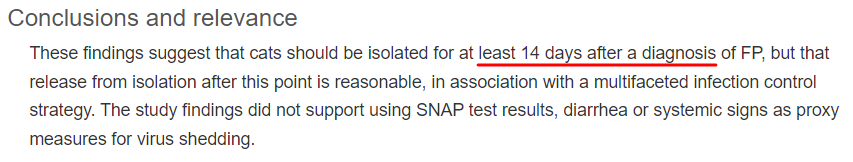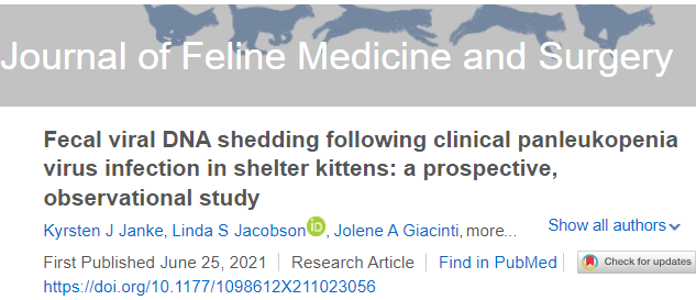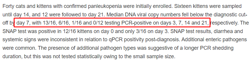 이제 전세계인들이 모두 알고 있는 PCR 검사를 통하여 범백혈구감소증에 걸린 고양이가 변으로 언제까지 바이러스를 배출하는지 검사한 논문이다.