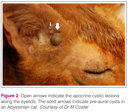 낭샘종 혹은 낭선종이라고 불리우는 증례인 cystadenomatosis는 고양이 아코크린땀샘에서 기원하는 양성 낭종성 구조물이다.