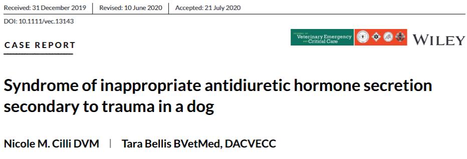 또한 교상, 교통사고, 낙상을 포함한 급격한 창상의 경우, 혹인 정신적 충격의 경우에도 이런 ADH 분비에 영향을 줄 가능성이 있으니 입원 상태에서 매우 잦은 전해질 검사가 추천된다는것의 근거 자료가 될 수 있을 듯 하다.