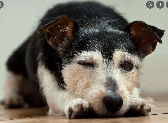 하지만 노령견에서 퇴행성 관절염 등으로 인하여 척추와 다리를 굽히는데에 통증을 느끼거나 하는 등의 문제가 있을때에도 이런 자세가 나올 수 있다.