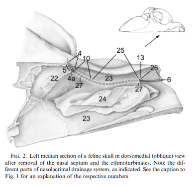 또한 Fig2에서 대부분의 누관이 비강의 측벽속을 주행하고 있기 때문에 평편상피암종이나 골육종같은 뼈 기원의 종양성 병변 이외에 비염이나 비강내 이상으로 누관이 mass effect로 막히는 경우는 거의 없을것을 추정할 수 있다.