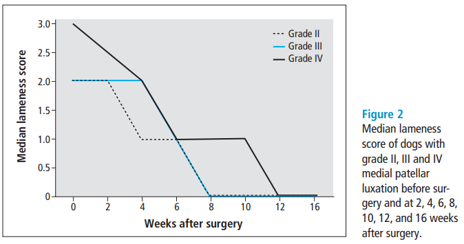 슬개골탈구의 grade가 낮을 수록 즉, 빨리 수술할 수록 수술 이후 예후는 좋은것으로 나온다.