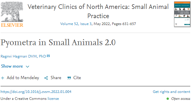 자궁축농증은 응급질환으로 수술적으로 감염된 자궁을 제거하는 방법이 1차적으로 선택된다.