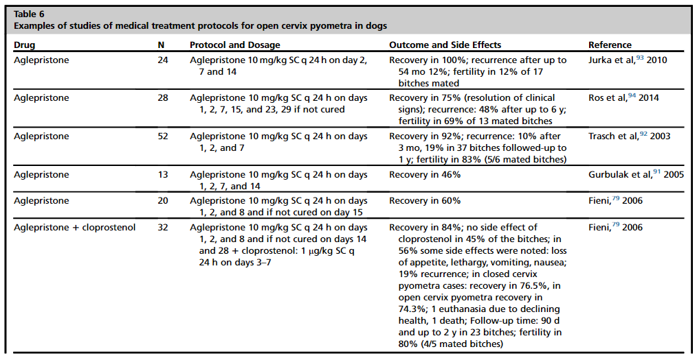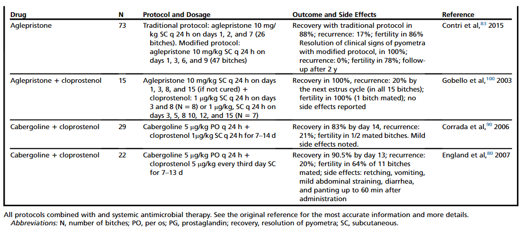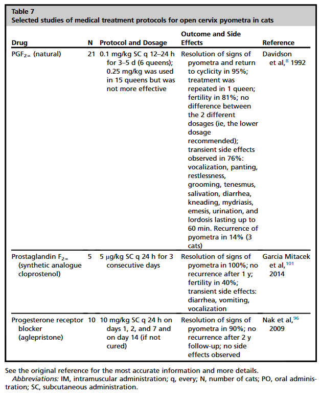 고양이에서 내과적 자궁축농증 치료 프로토콜은 다음과 같다.