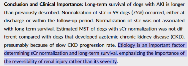 크레이틴의 정상화가 예후에 중요한 요소인 바 크레아티닌 수치에 대한 반복적인 검사가 필요하다는 의미로 해석할 수 있다.