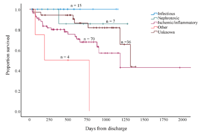 발생 원인에 따른 급성 신부전 환자의 장기생존율