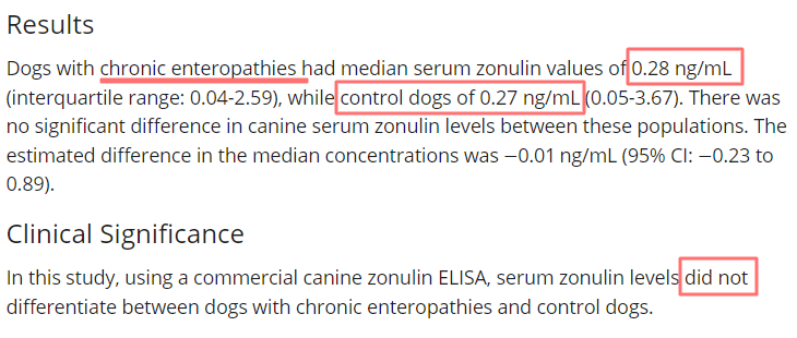 혈청내 zolulin 수치로 반려견의 만성장질환에 대한 평가를 할 수 있을까?