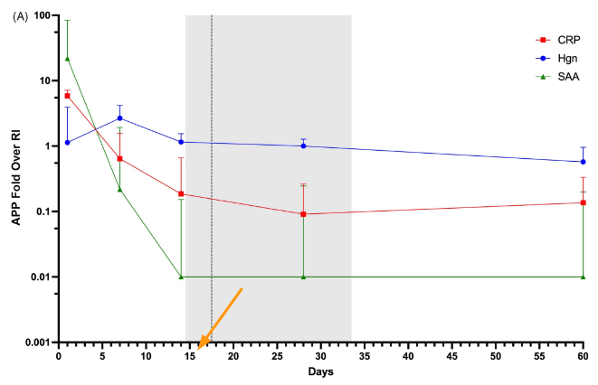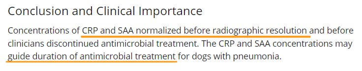 과학적 근거로로 급성기 단백질인 개에서는 CRP, 고양이는 SAA를 기준으로 할 수 있다는것을 과학적으로 실증한 논문이라 하겠다.