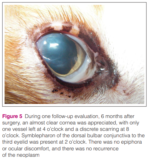 이 증례에서도 안구적출은 하지 않되 미세 수술을 통해 종양의 일부를 떼어내는 수술을 하고 난 후 항암 안약을 만들어 적용한 케이스이다.