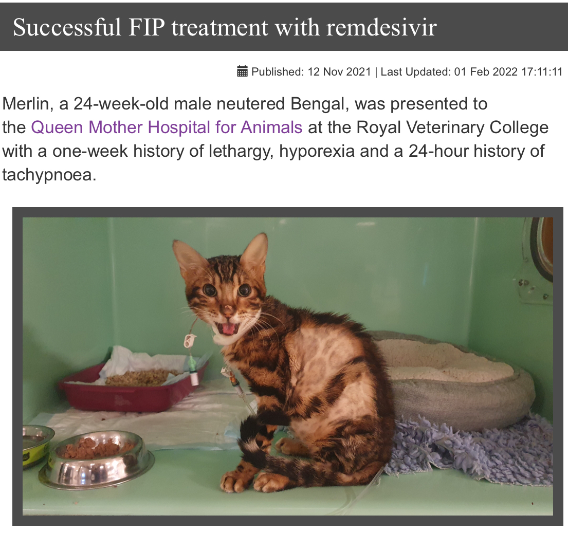 고양이 전염성 복막염 치료제 : 렘데시비르 적용
