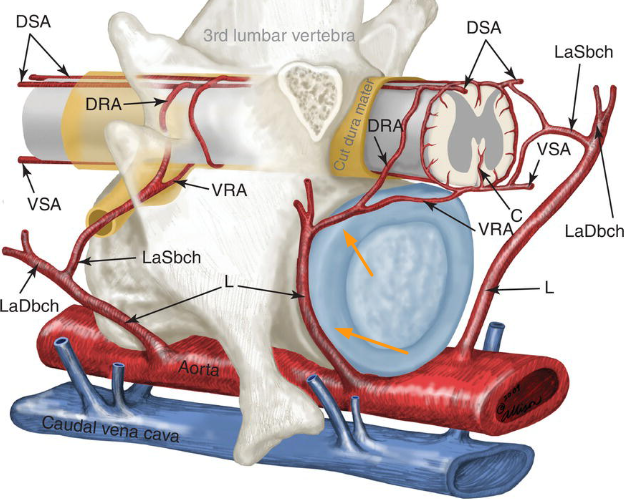 해부학적인 척추골의 구조를 보면 척추골 몸통 즉, vertebral body 의 양 끝단에 동맥과 정맥이 흘러가면서 척수신경 까지 혈액공급을 한다.