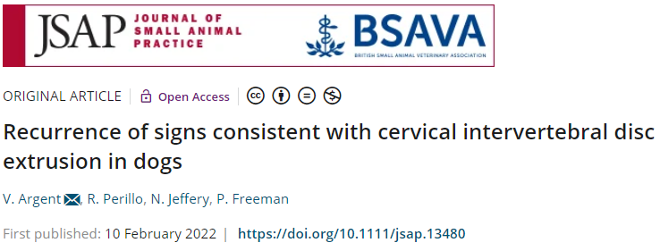 반려견 경추 디스크의 치료 후 재발에 관한 최신 지견