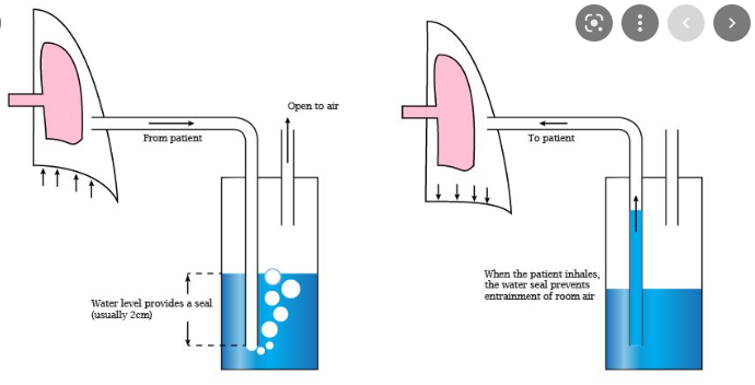 이때 흉관의 끝부분은 1 way jar 를 이용하여 공기가 더이상 차오르지 않을때까지 유지해주는 것이 교과서적인 표준이다.