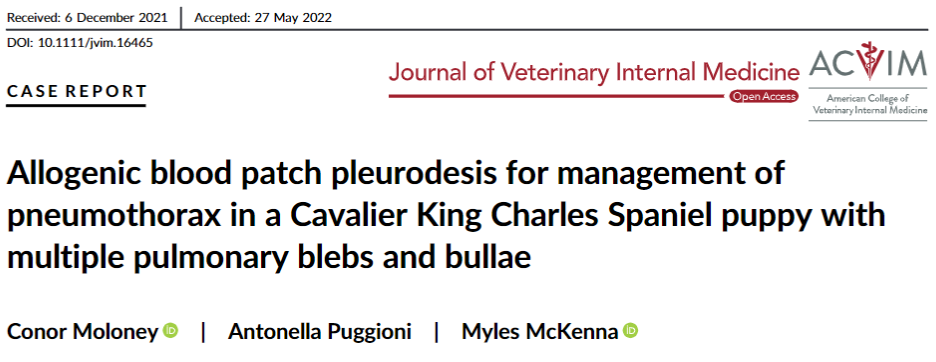 폐가 찢어지거나 기도 파열이 있는 등의 이유로 기흉이 생겼을 때 통상 반려견에서는 소량의 기흉의 경우 공기양의 증가를 모니터링 하는게 1차적이고