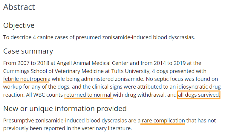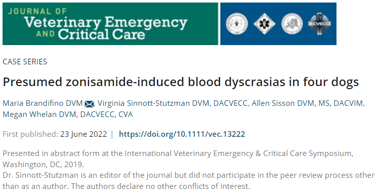 항경련제인 조니사미드(zonisamide)의 반려견 환자의 신규 희귀 부작용
