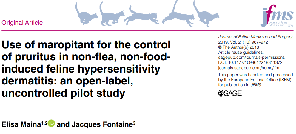 이 약물이 벼룩이나 음식 알러지가 아닌 간지러움을 호소하는 고양이에서 치료목적으로 사용될 수 있다는 것을 알려주는 논문이다.