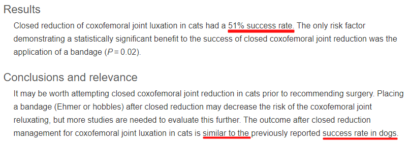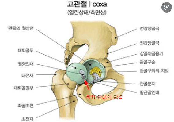 고관절 탈구가 있는 경우 대퇴골의 원형 인대가 이미 단절된것으로 보기 때문에 실제로는 수술적 교정을 추천한다.