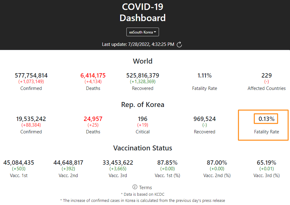 코로나 사망율이 0.13%인데 지금 이난리인것을 생각해 볼때 절대 낮은 수치가 아니다.