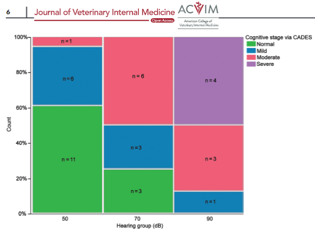 90데시벨 이상이 되어야 소리를 인지하던 강아지 모두가 치매가 있었으니 어느정도 소리에 대한 의미를 생각해 볼만하다.