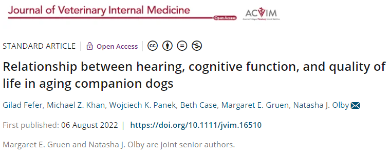 상대적으로 청력은 개에서 매우 중요한 감각이며 노령성 난청이 발생한 반려견의 삶의 질은 과연 덜어질까? 라는 질문에 답을 하는 논문이 새로 나왔다.