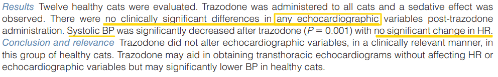 즉, 트라조돈 투약으로 심장초음파 검사 수치와 심박동에는 차이가 없었다는것이나