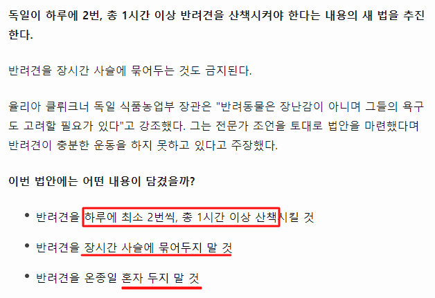 일부 보호자들은 유럽이나 독일의 반려동물에 관한 복지 정책을 언급하며