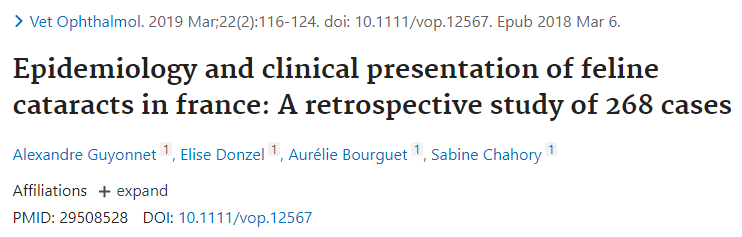 고양이 백내장 발병율 / 유병율